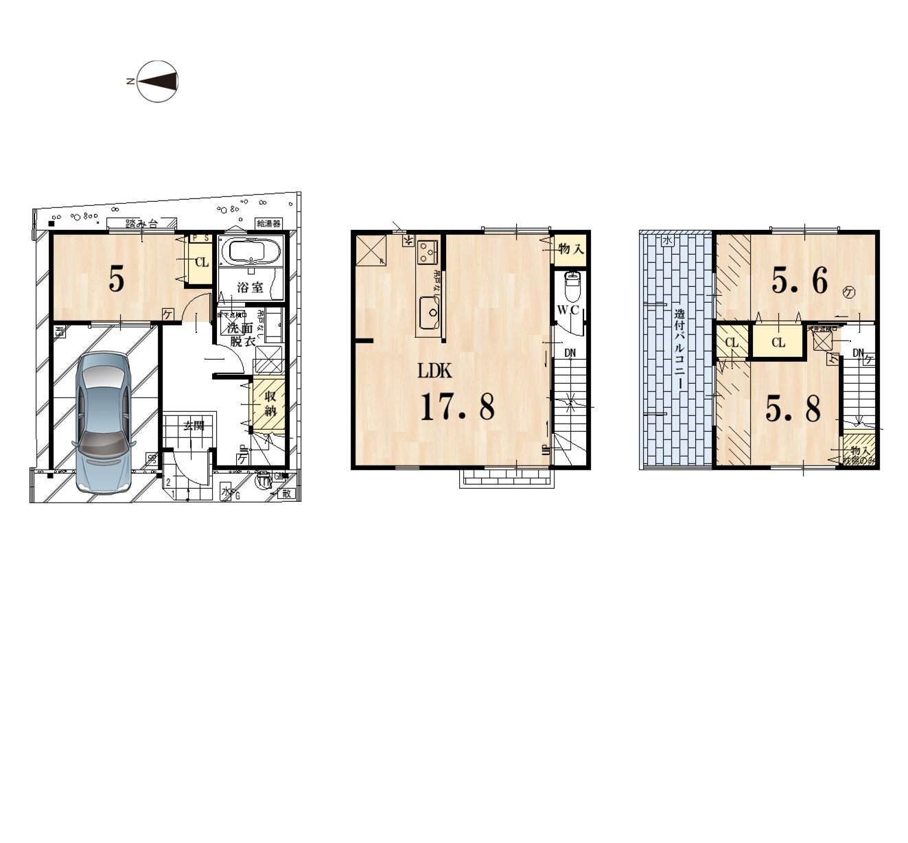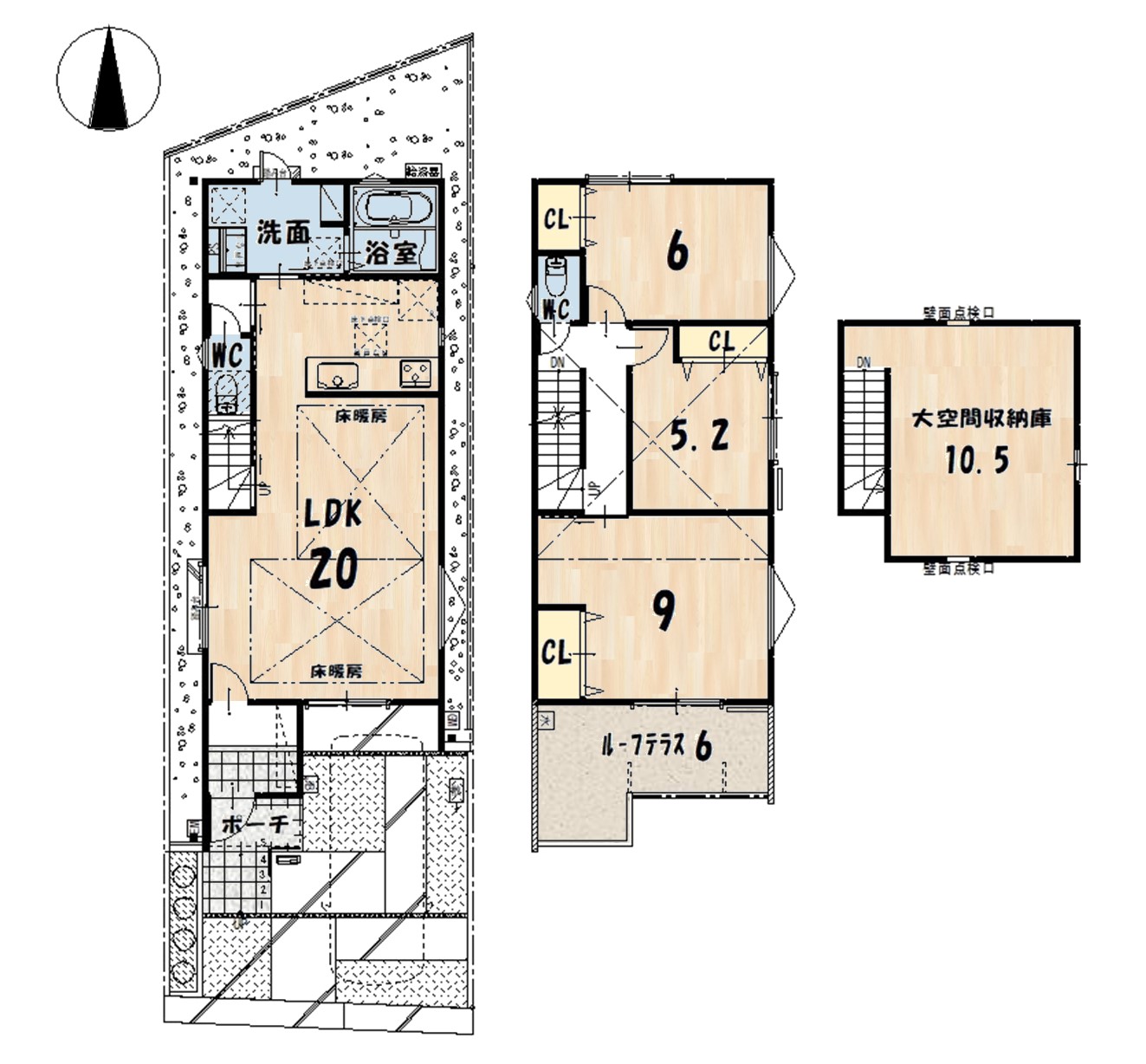 土地面積:公簿105.78㎡ / 建物面積:約93.56㎡