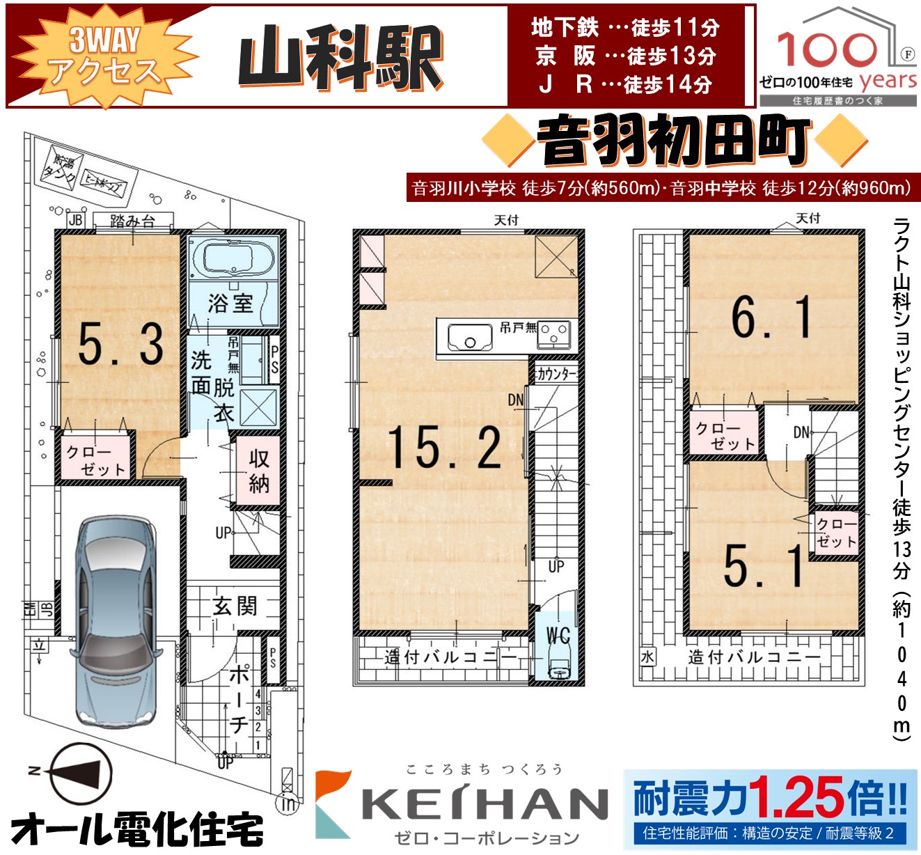 地下鉄東西線山科駅まで徒歩14分