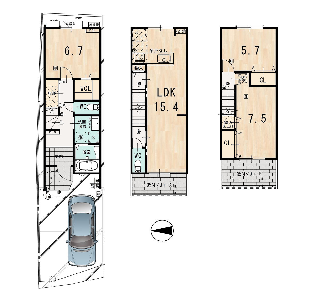 ※間取り図・パース・写真中に車や家具を掲載の場合は、配置例を示したもので実際に設置されているわけではありません。特にコメントがない場合は家具や車などは販売価格に含まれません。
