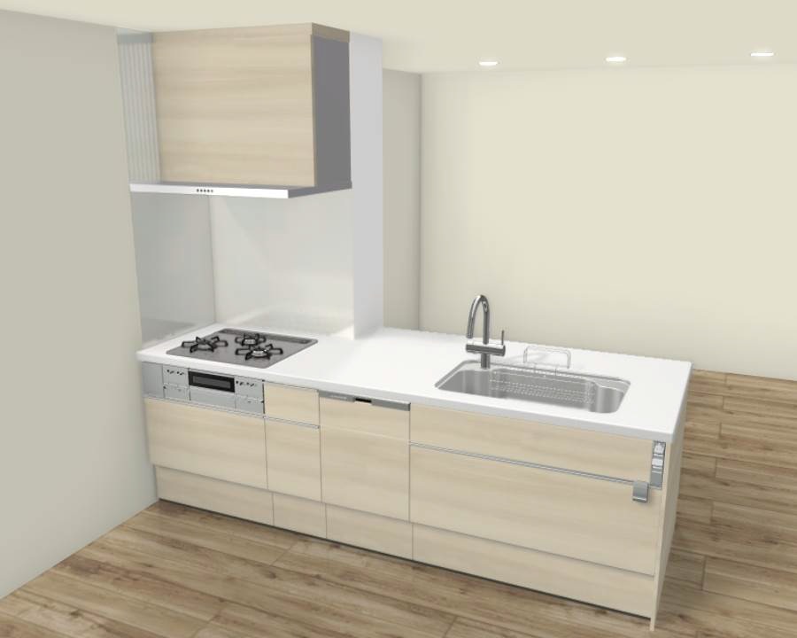 キッチン(※イメージ):耐久性に優れた人造大理石のワークトップと、汚れが溜まりにくい形状のステンレスシンクを採用!