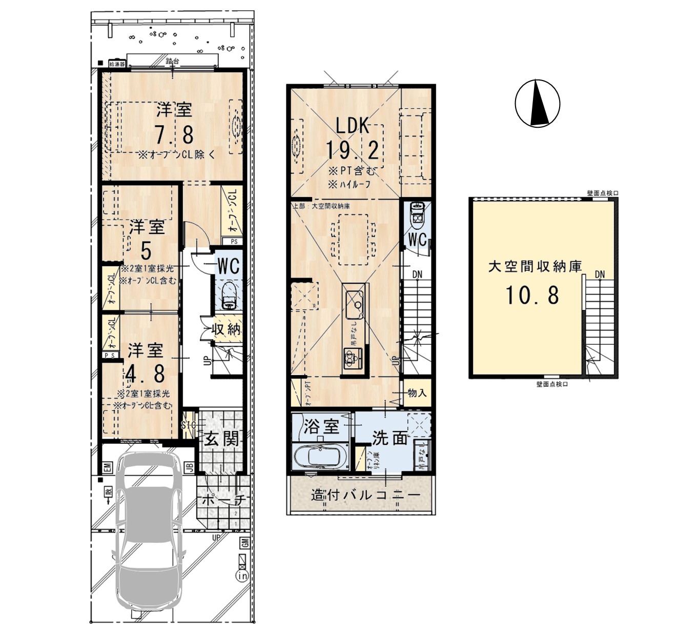 ※間取り図・パース・写真中に車や家具を掲載の場合は、配置例を示したもので実際に設置されているわけではありません。特にコメントがない場合は家具や車などは販売価格に含まれません。