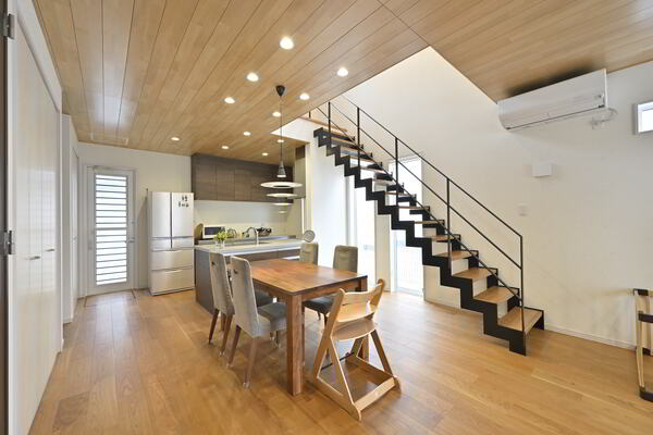オーバーハングとは下階よりも上階が張り出している設計デザインを言います。張り出した部分を「キャンティ」とよび、その下の部分を駐車場や庭に、上の部分をリビングやバルコニー、居住スペースに利用することができるので、狭小地などに最適です。 |